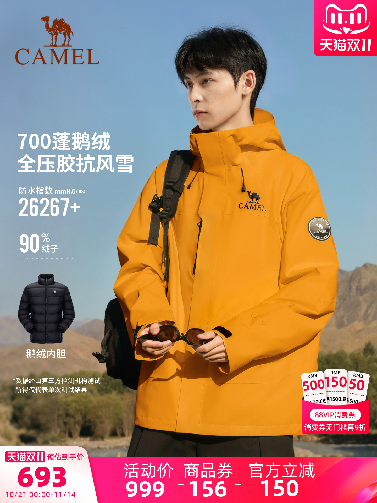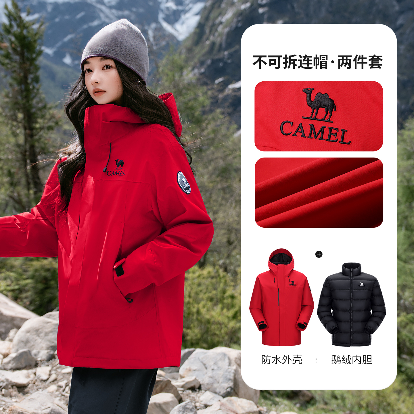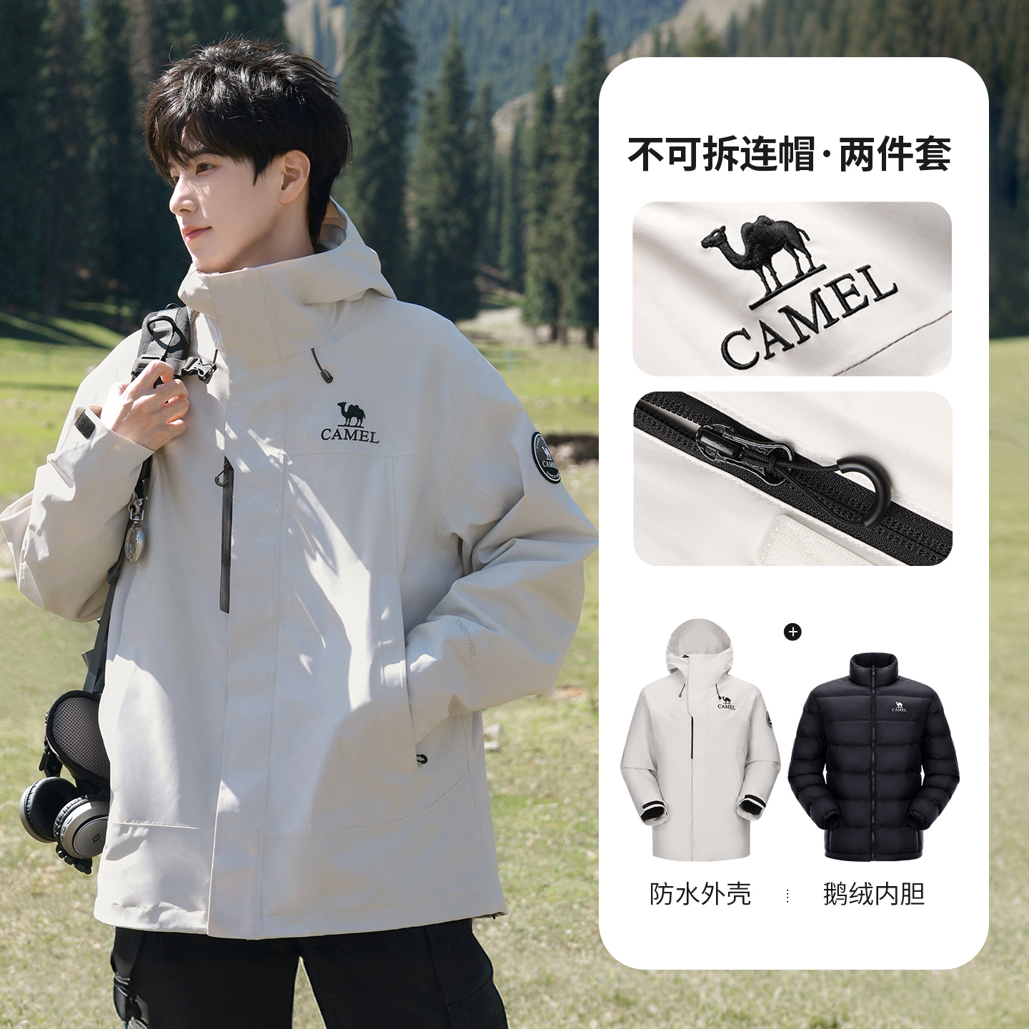 【鹅绒版】骆驼王者凯甲ICON鹅绒羽绒服冲锋衣男女新款三合一外套