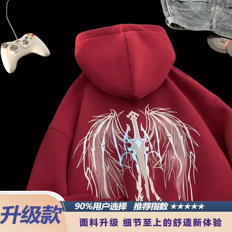 夜光连帽重磅加绒卫衣男童秋冬2025新款宽松上衣服青少年男生外套