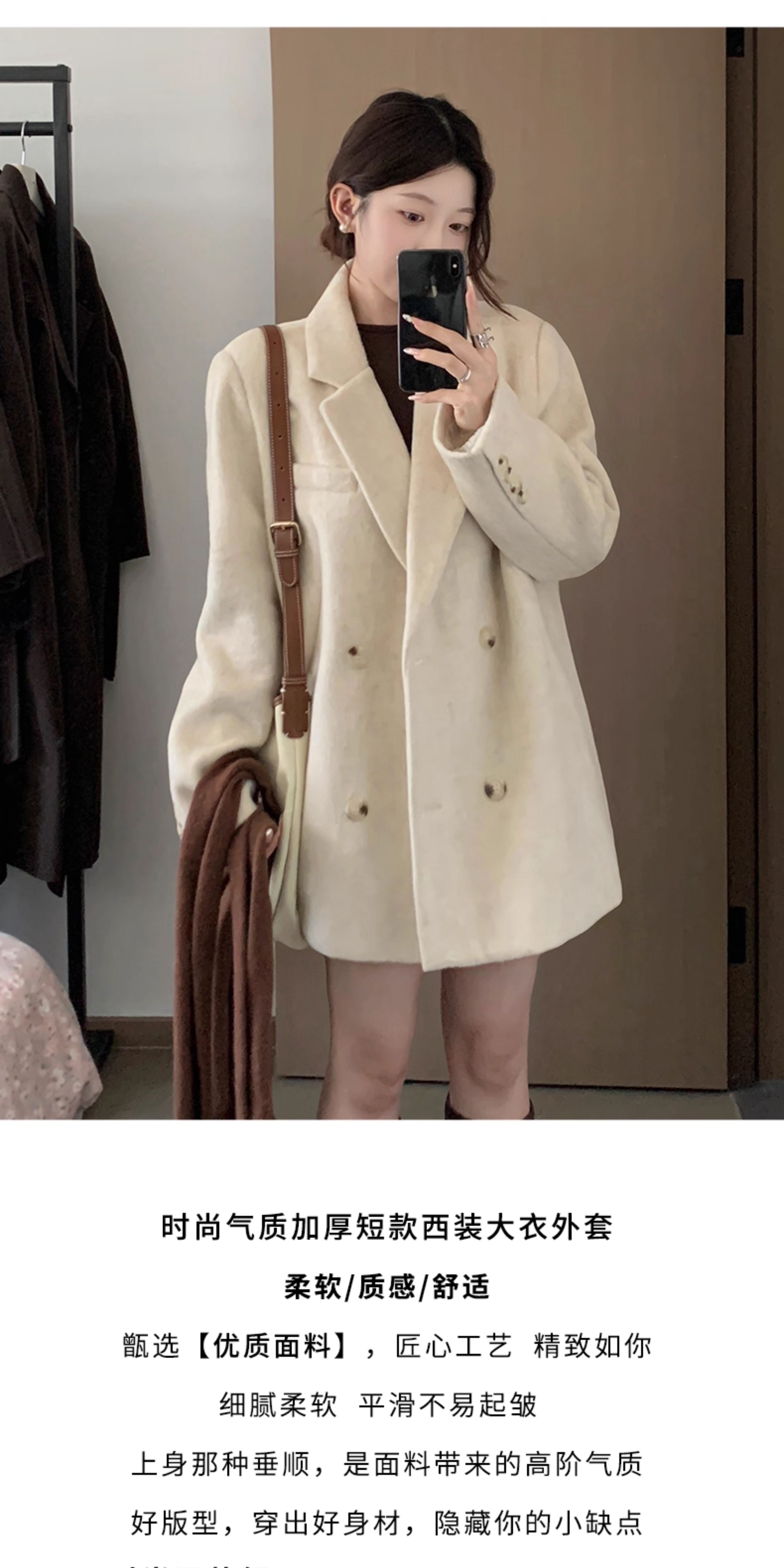 西装毛呢外套女短款小个子2025冬季韩系新款高级感厚羊毛呢子大衣