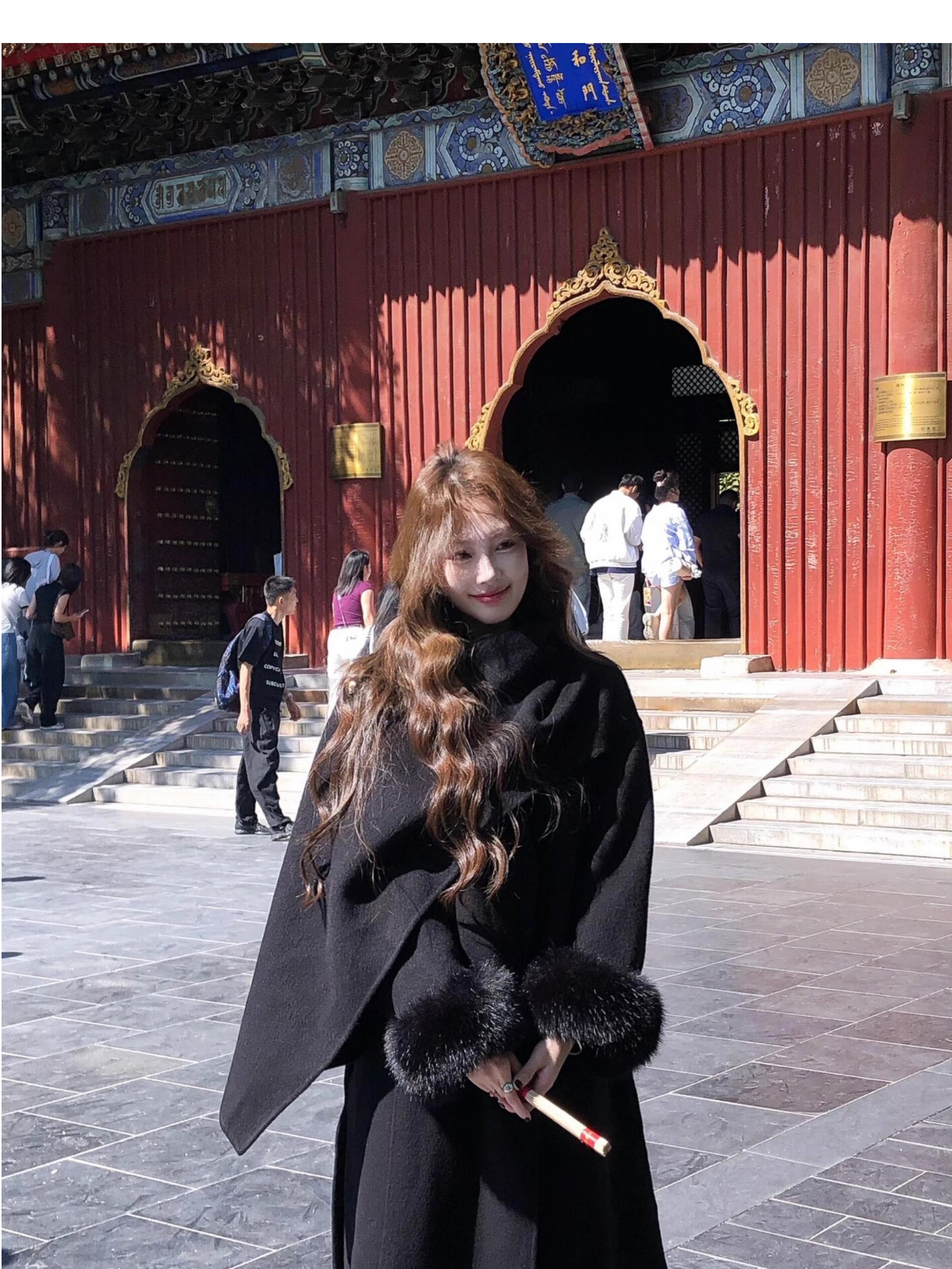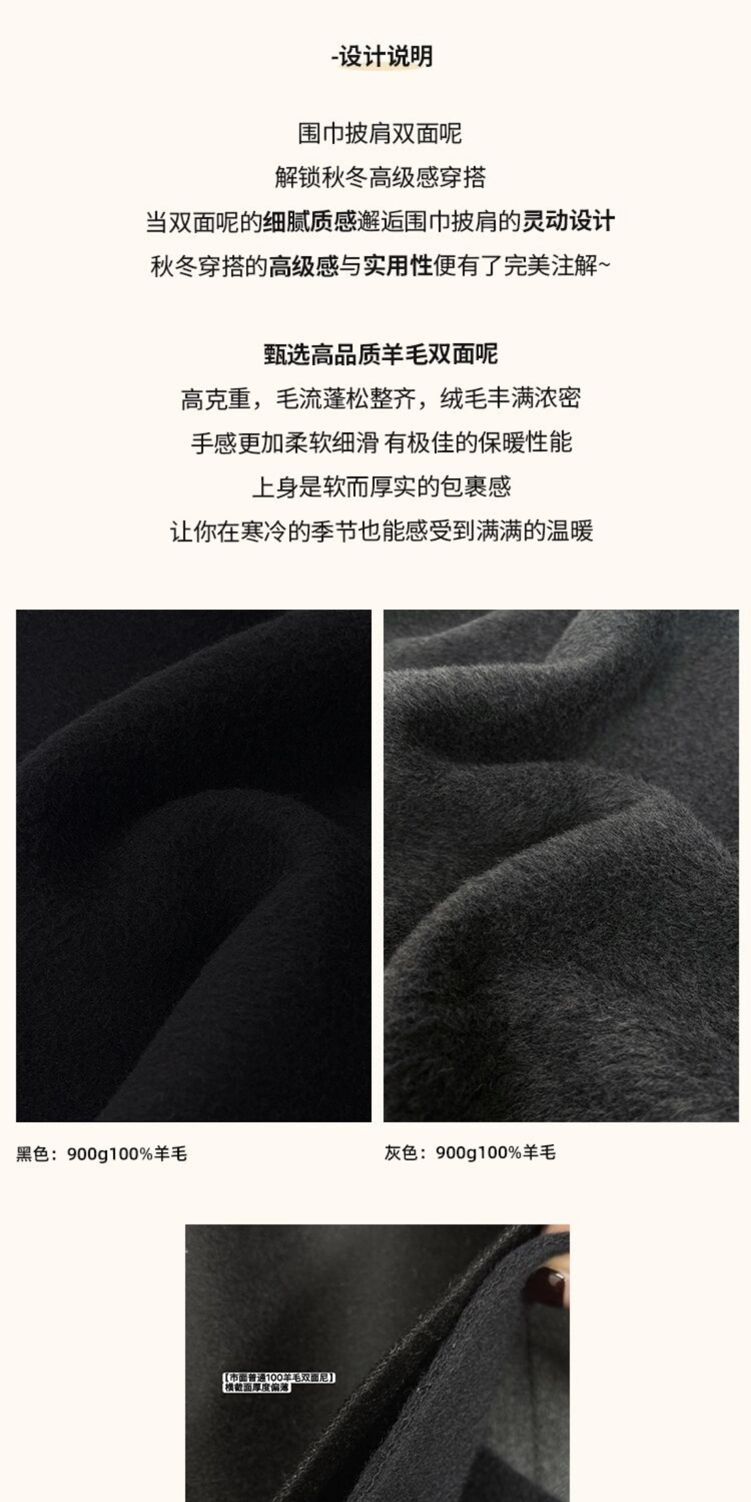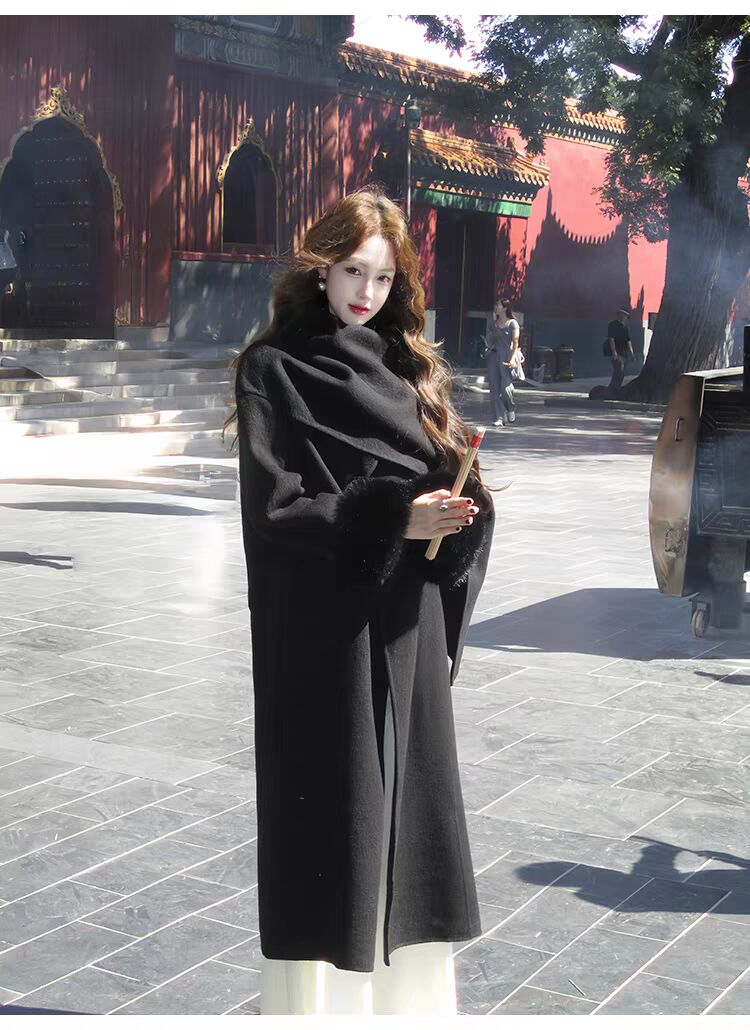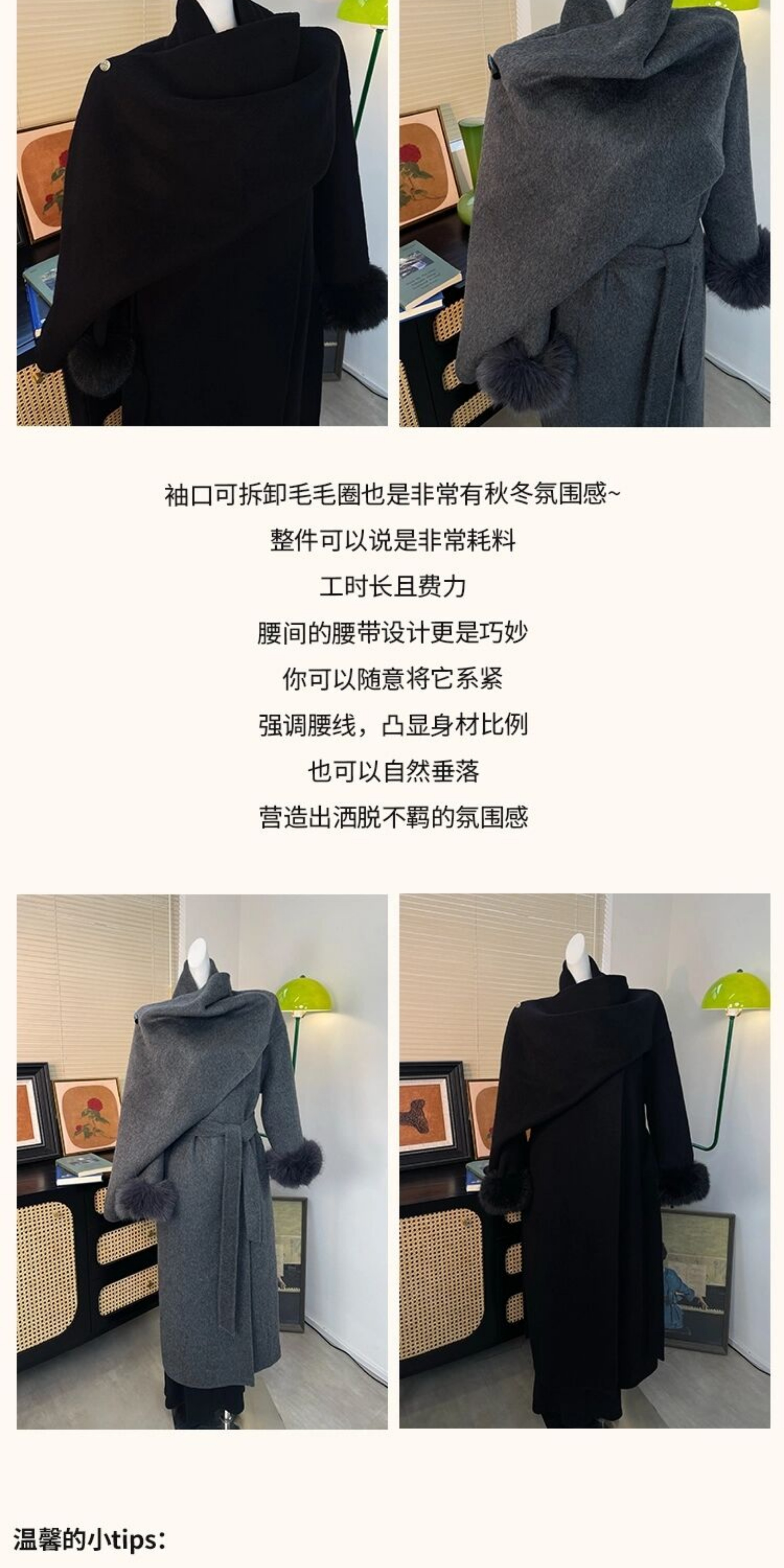 双面羊绒大衣女2025秋冬新款兜领围巾披肩狐狸毛袖全羊毛呢子外套