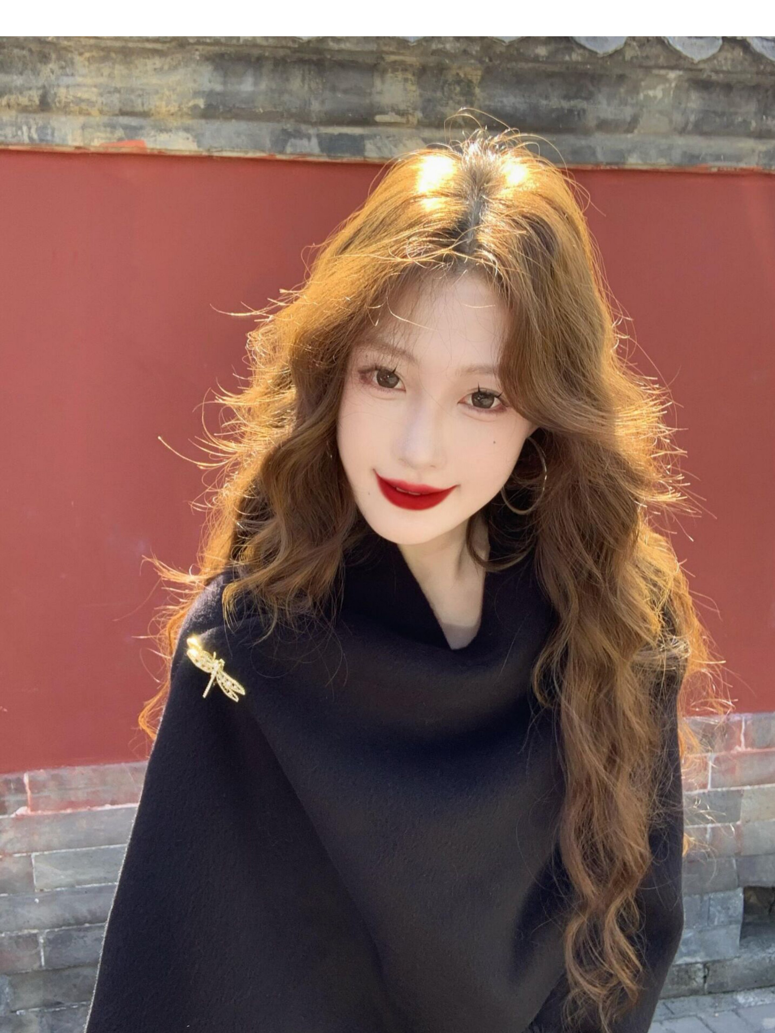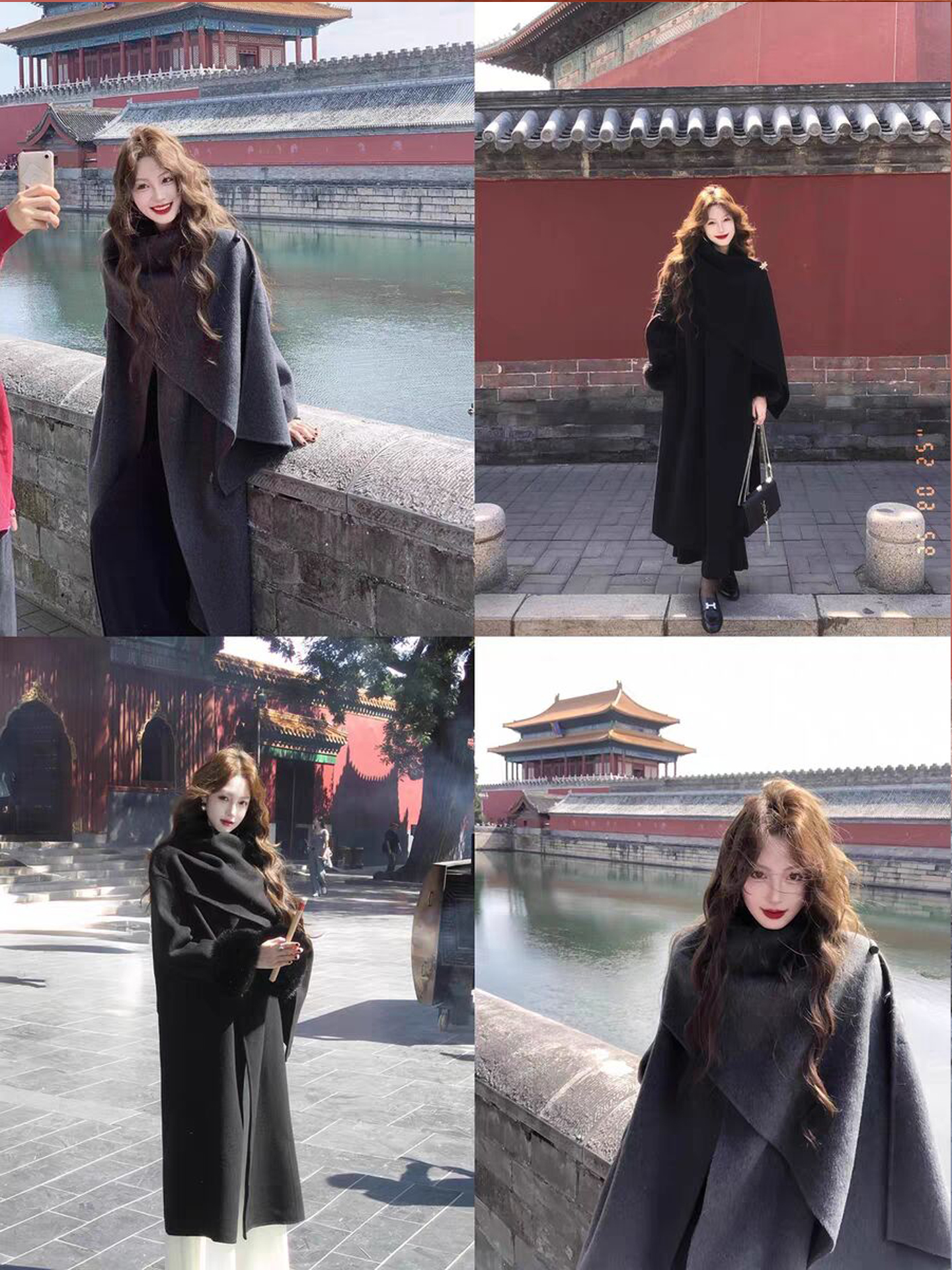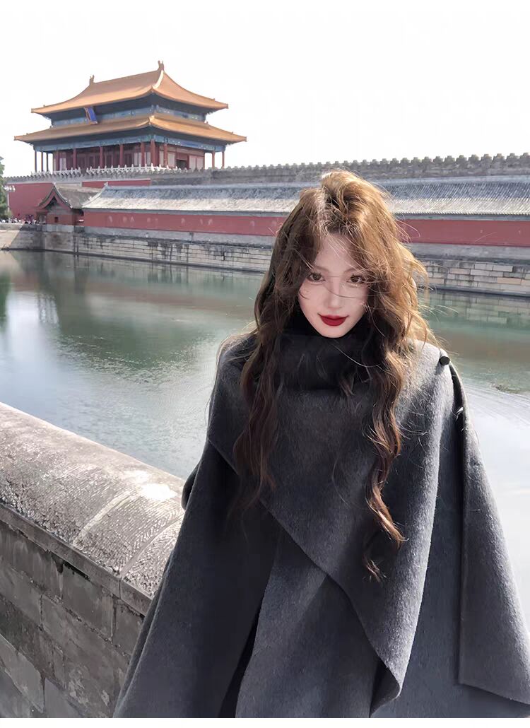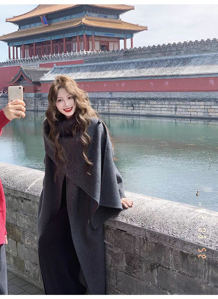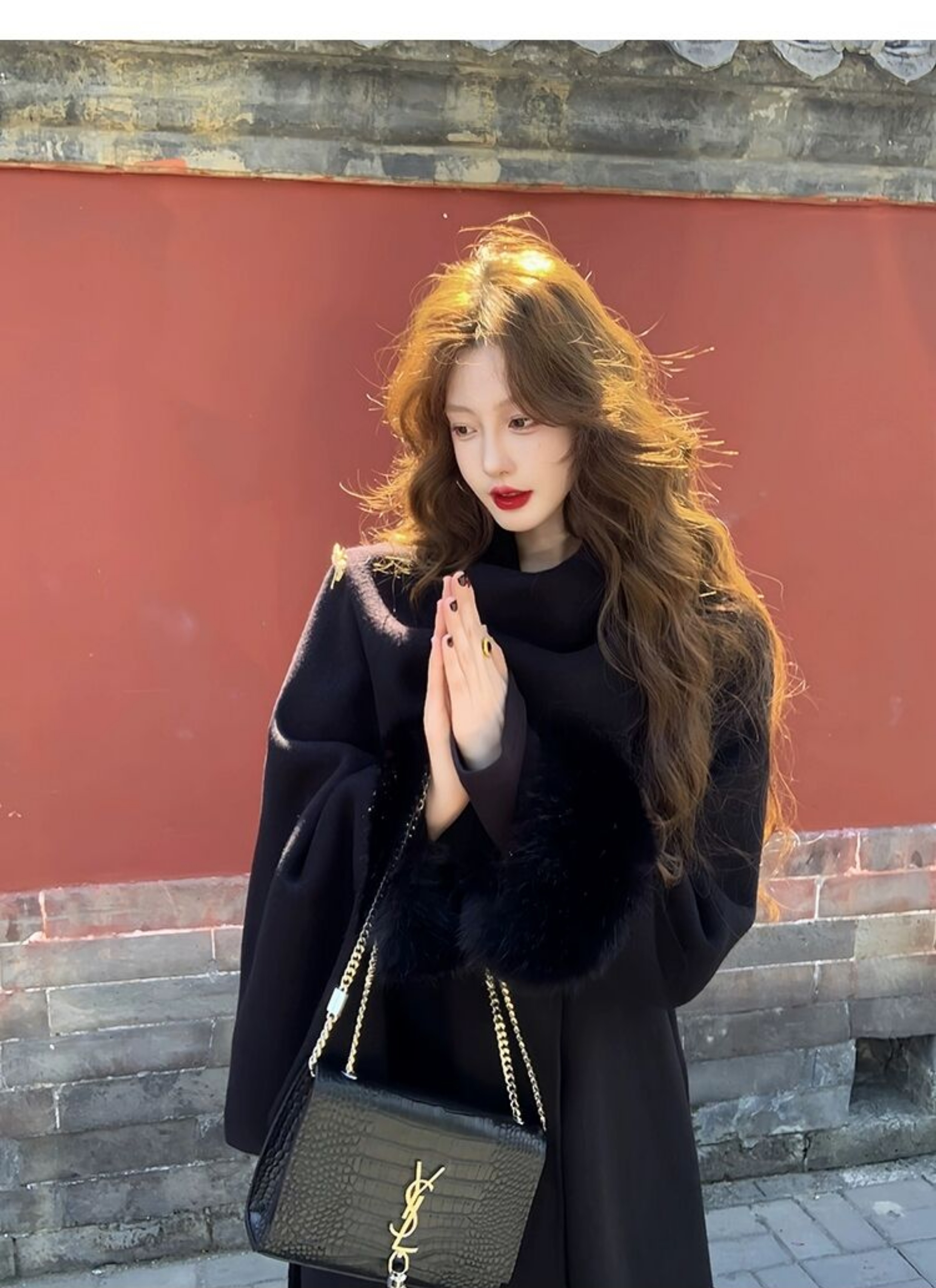 双面羊绒大衣女2025秋冬新款兜领围巾披肩狐狸毛袖全羊毛呢子外套