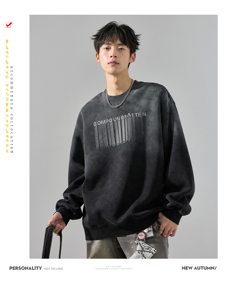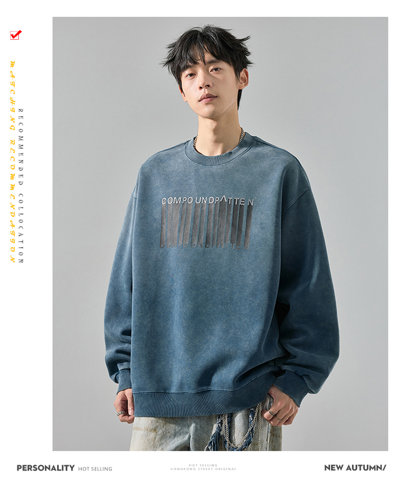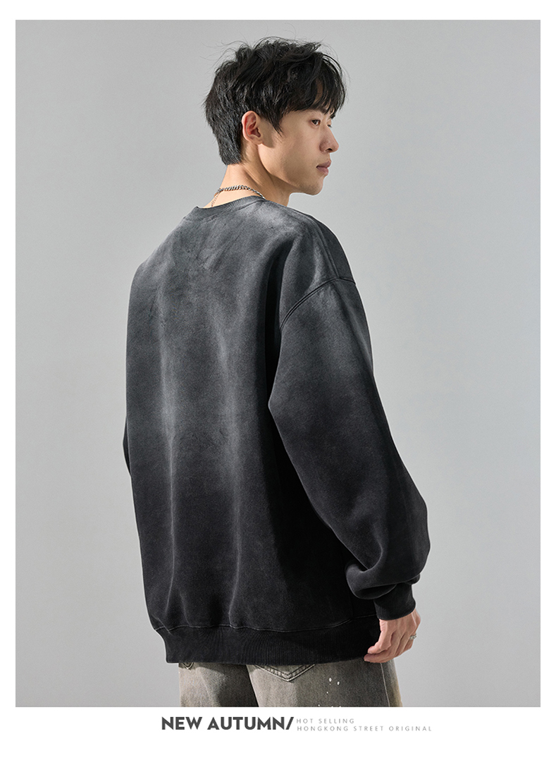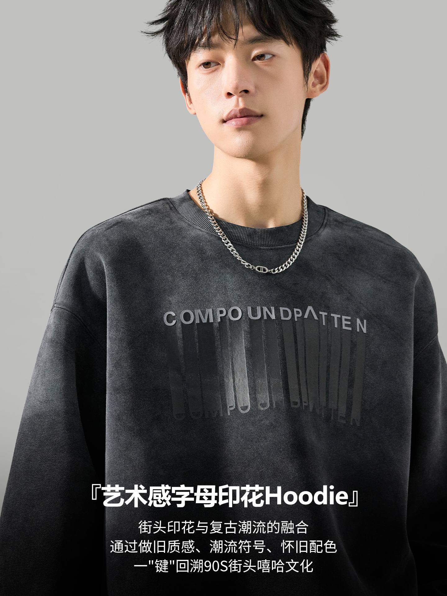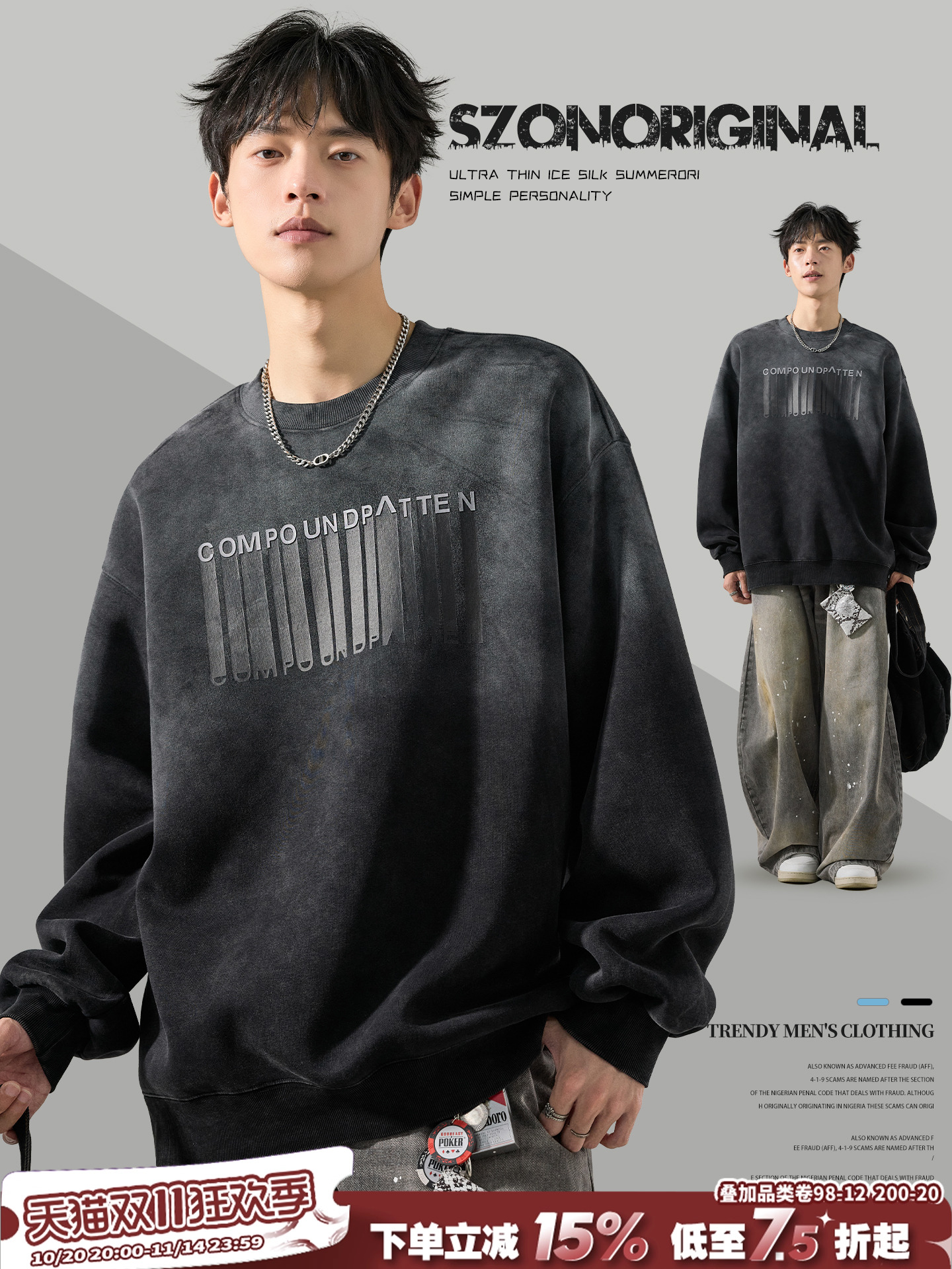 卫衣男款秋冬宽松痞帅水洗印花重磅长袖上衣美式高街潮牌圆领男装