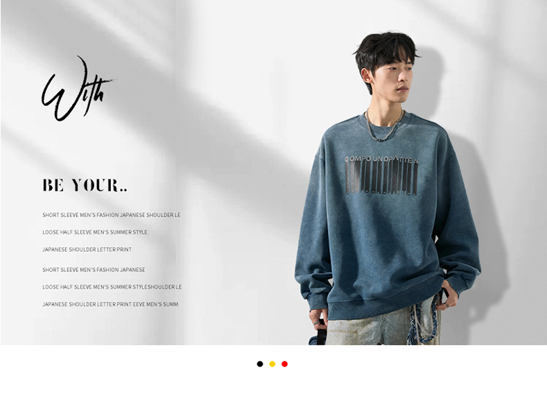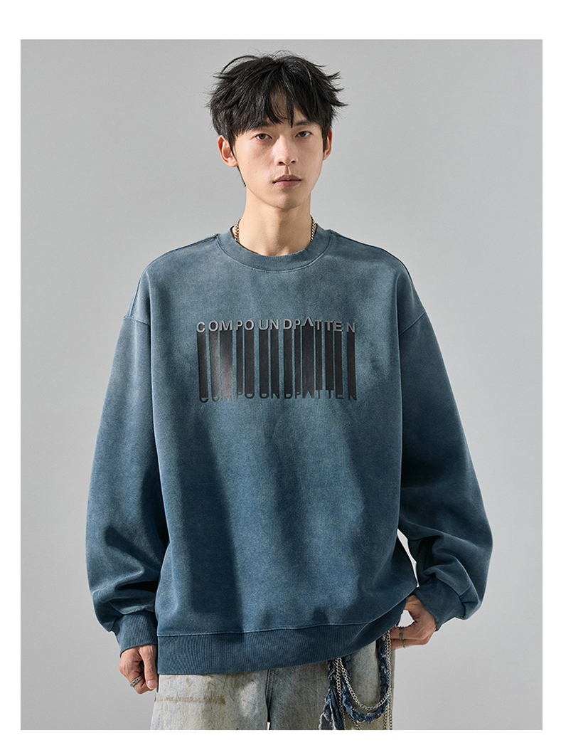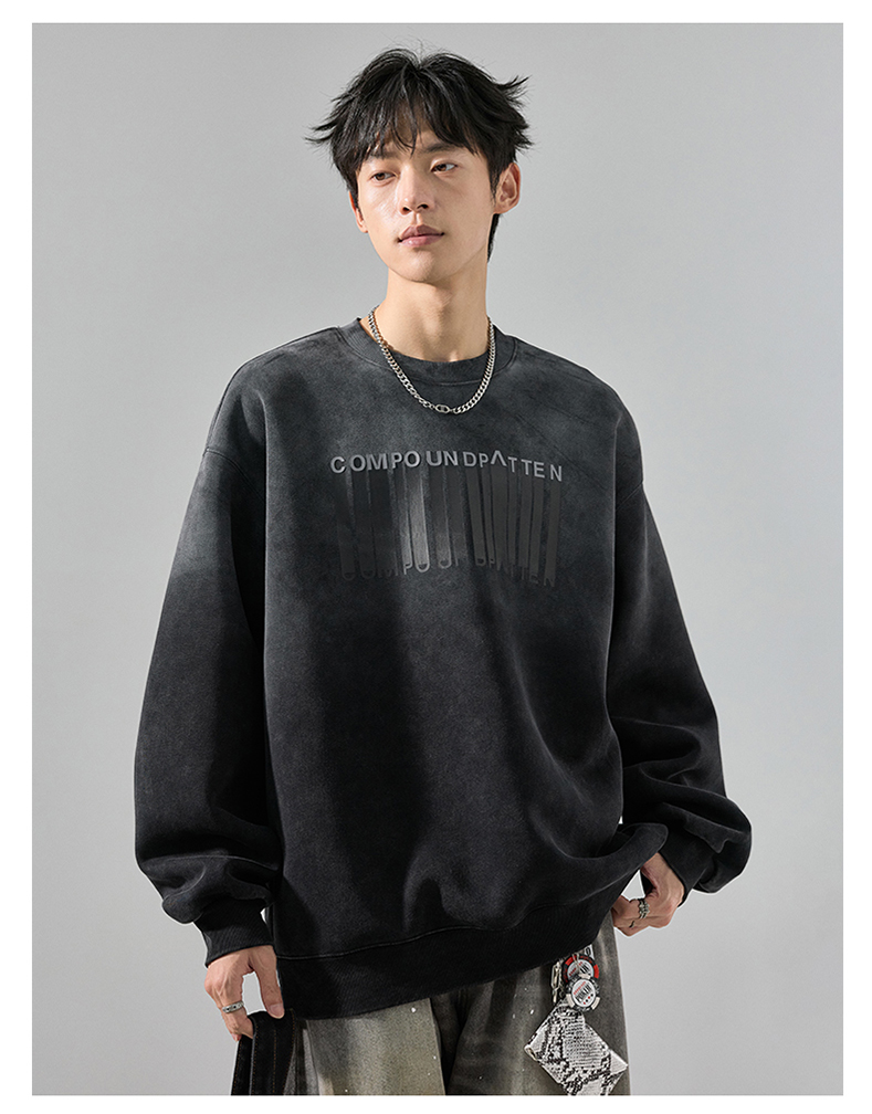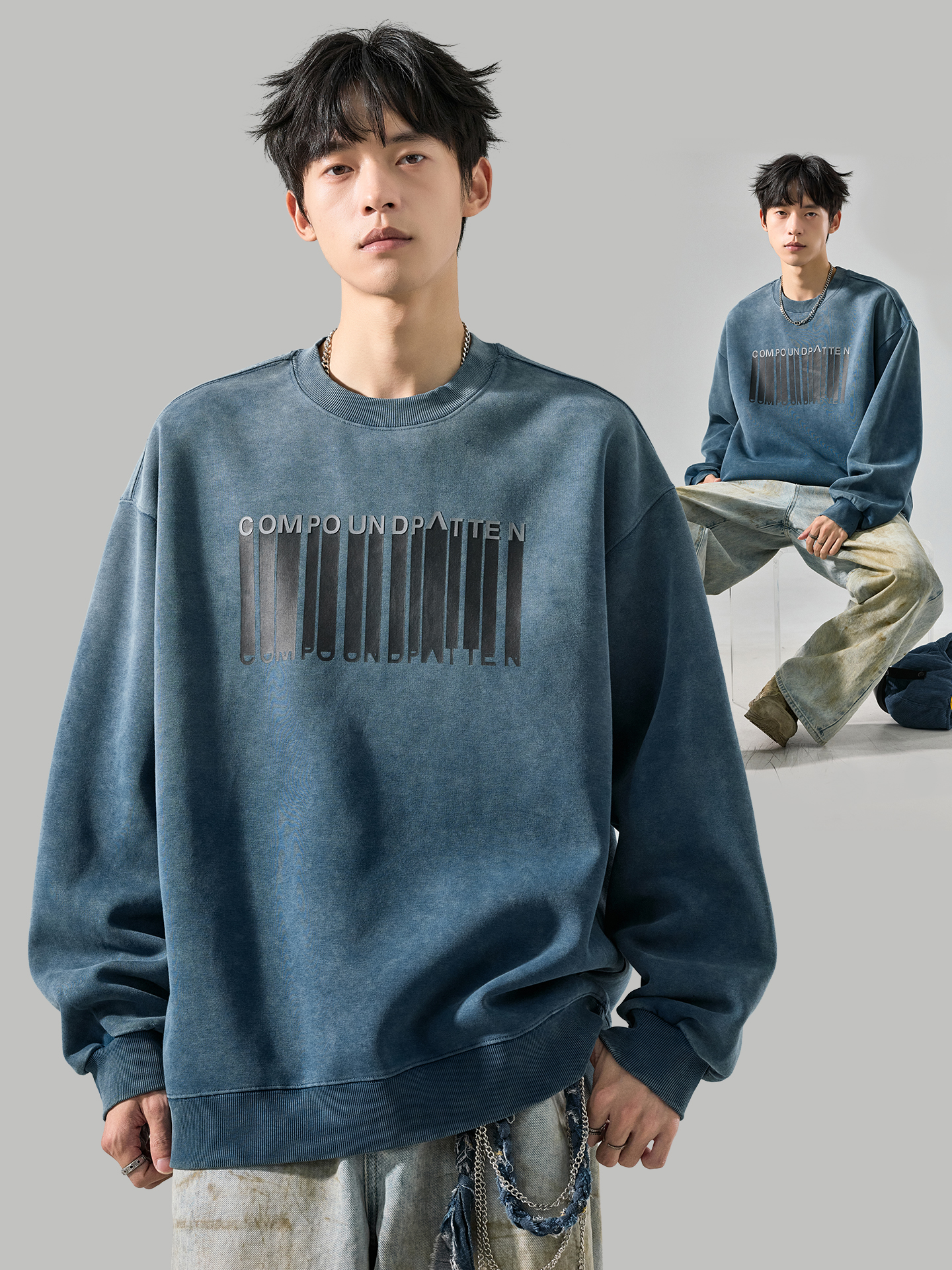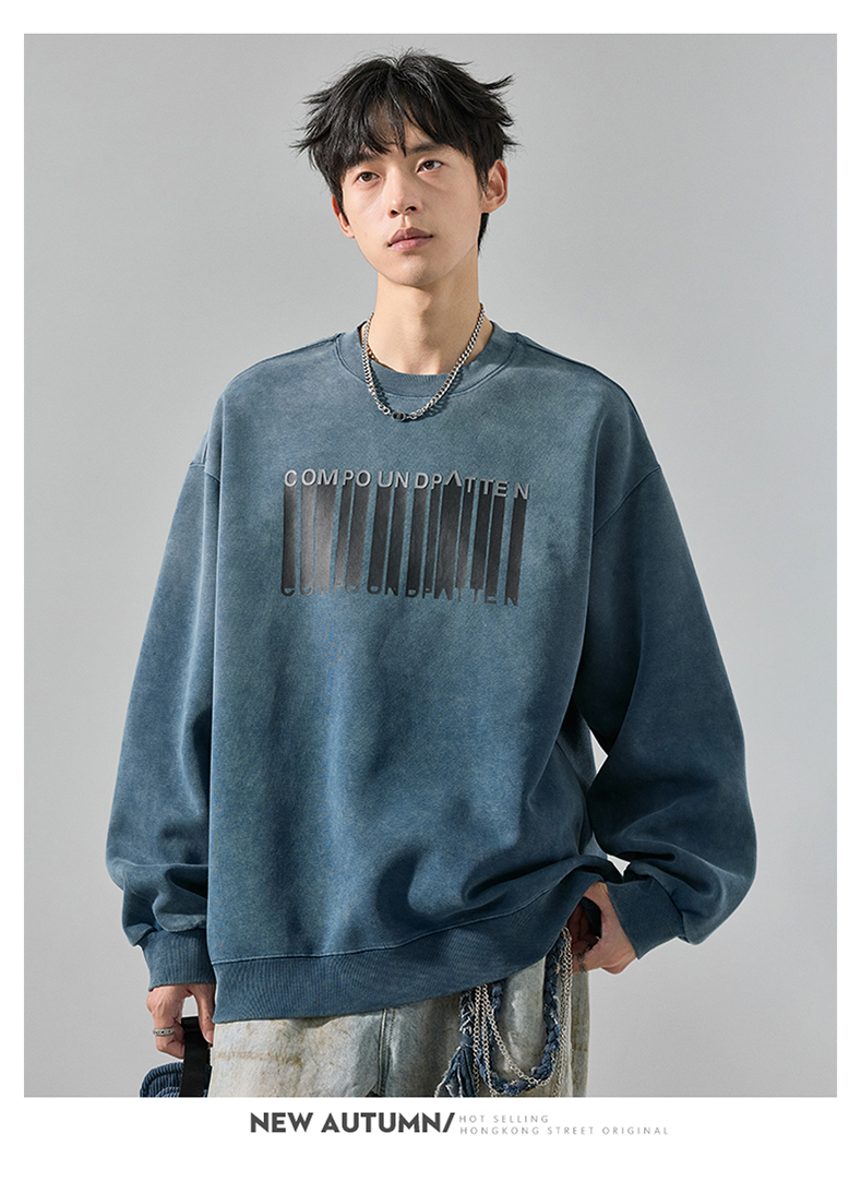 卫衣男款秋冬宽松痞帅水洗印花重磅长袖上衣美式高街潮牌圆领男装