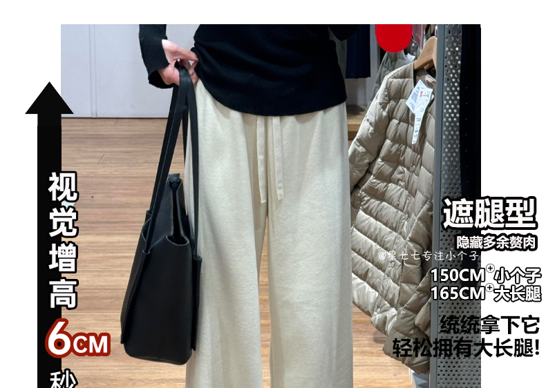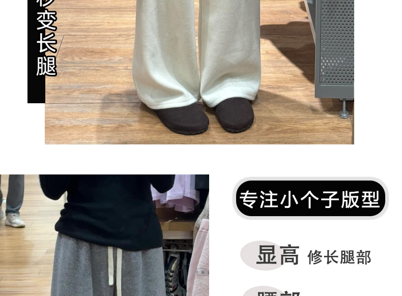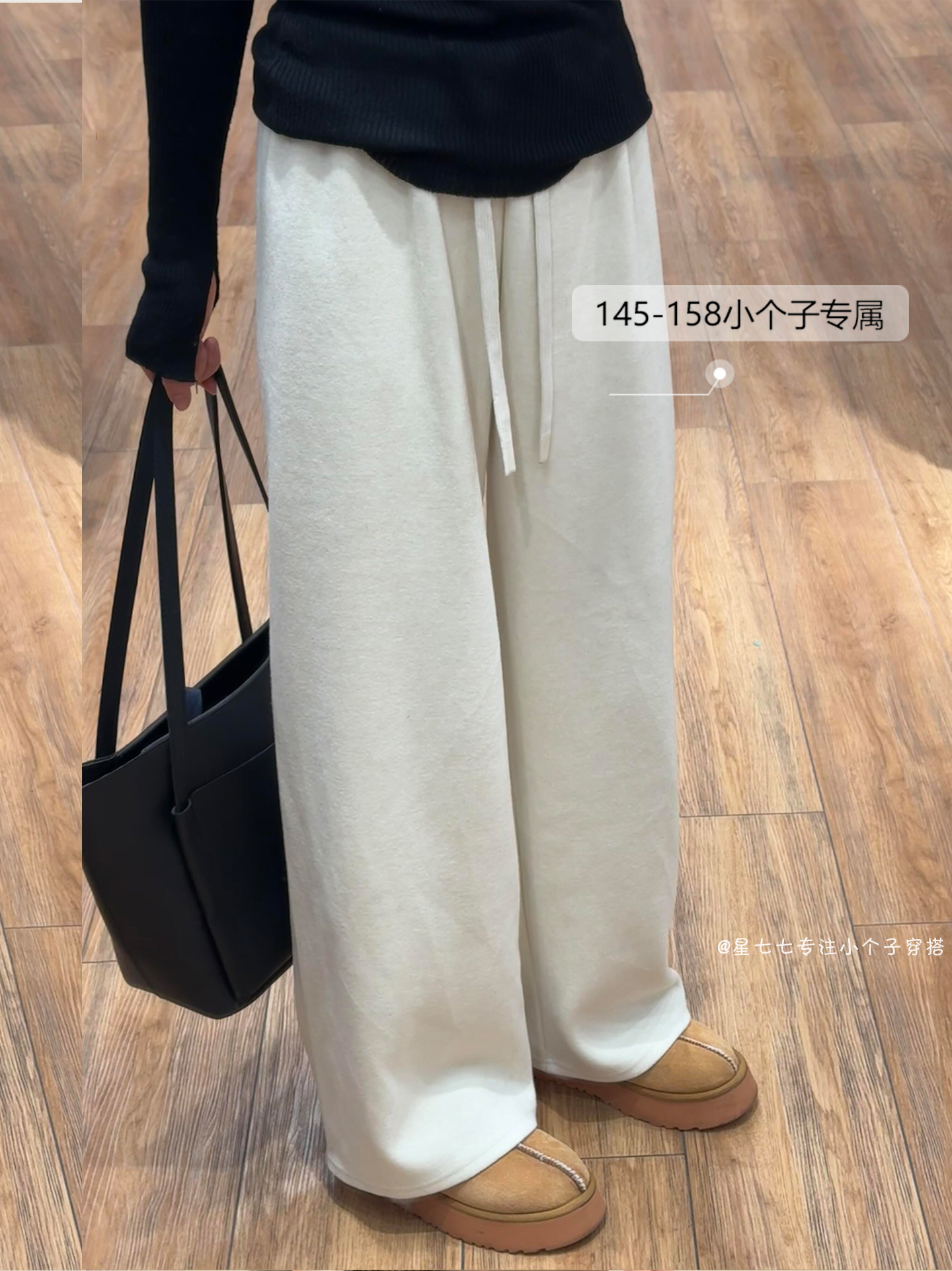 150小矮个子毛巾裤垂坠感软糯女款秋冬季加绒高腰直筒阔腿裤九分